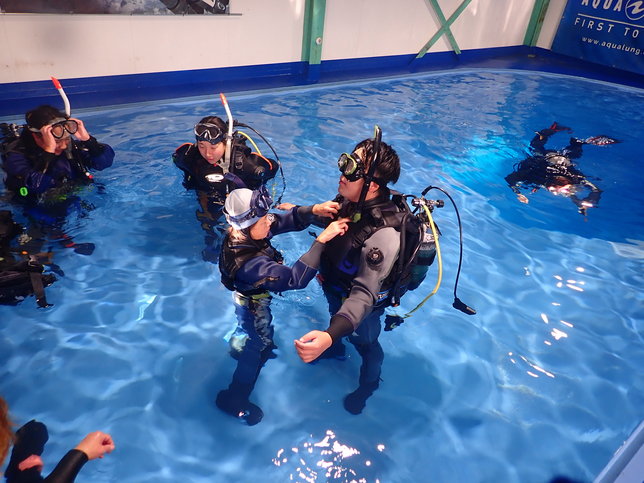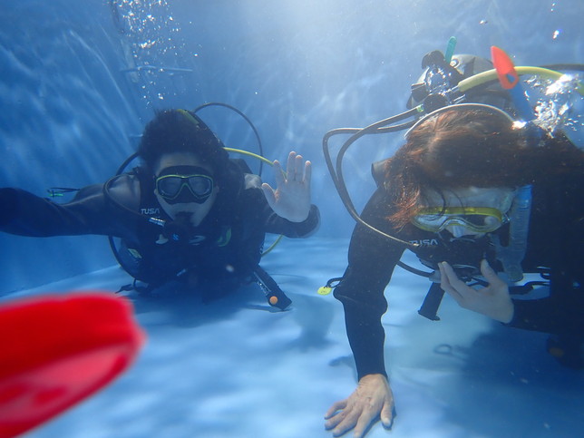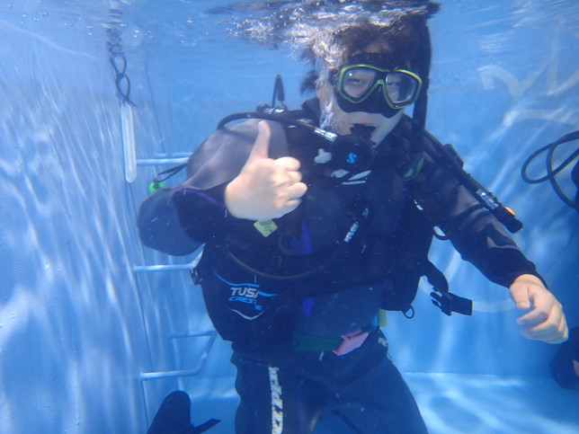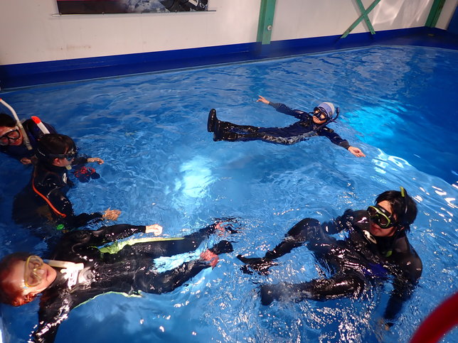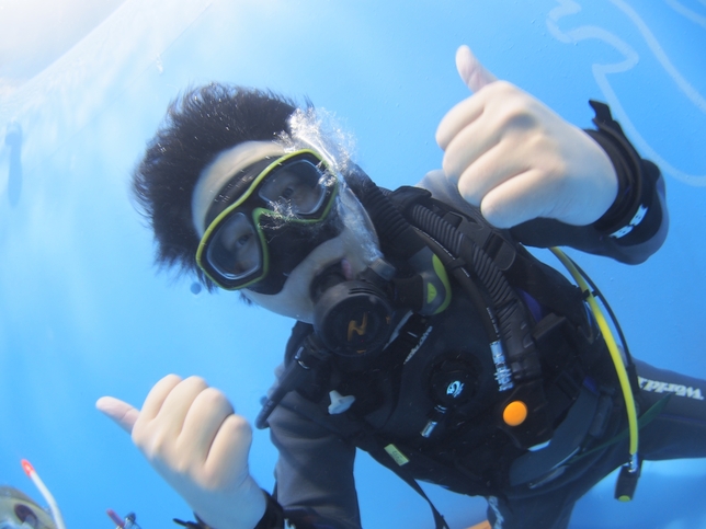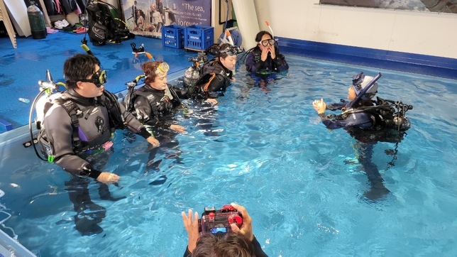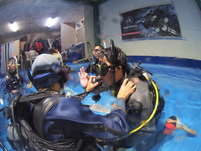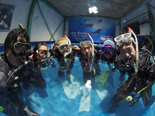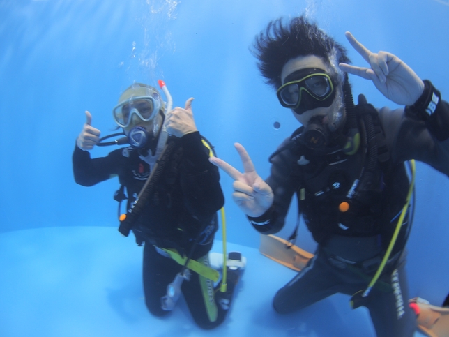 プール実習では、ダイビングでエントリーする前の準備からエグジットするまでの基礎から、様々な緊急事態が発生した際の対処方まで幅広く教えてもらえました!